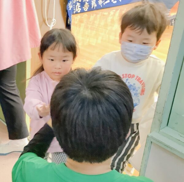 お面や大蛇の迫力に、ゆり組さんは怖がる子も・・・😭